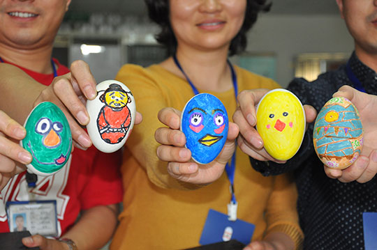 五月五日,立夏。一場生動有趣的畫蛋比賽在總公司辦公區(qū)舉行。分別來自各部門的十多名參賽選手,各人領(lǐng)取一只白色大鵝蛋,用公司提供的水彩筆在蛋上現(xiàn)場作創(chuàng)意畫。現(xiàn)場還邀約員工20名前來觀摩選評。通過民主評選,最終選出了五只創(chuàng)意作品蛋,并頒發(fā)了精美禮品。