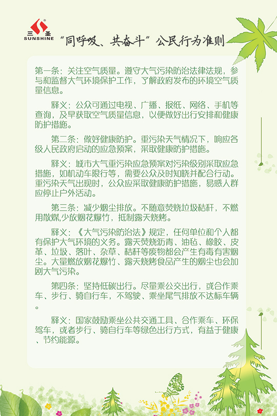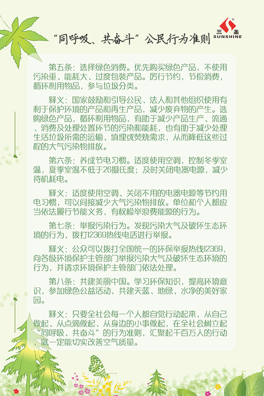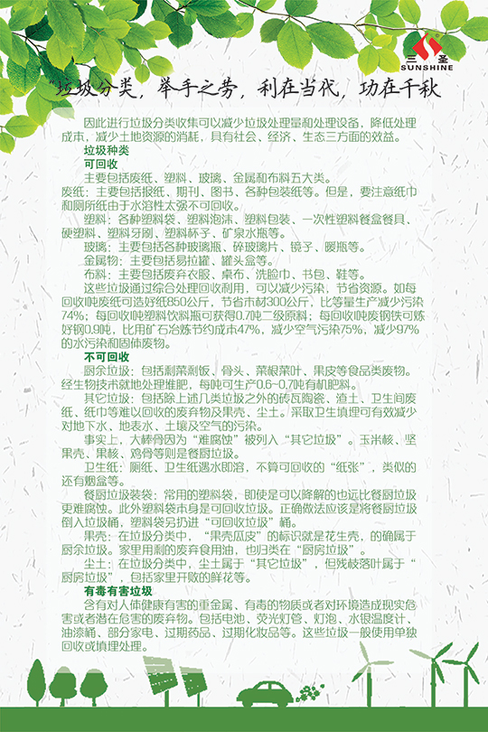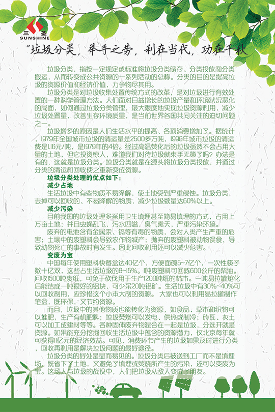 今年“三圣環(huán)保日”的主題為“三圣助力大環(huán)保,員工踐行小環(huán)保”,我們的口號(hào)是:“踐行環(huán)保?從我們身邊的小事做起”。