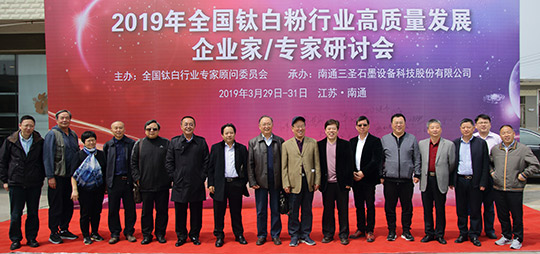 2019年3月29日至31日,2019年鈦白粉行業(yè)高質(zhì)量發(fā)展企業(yè)家/專家研討會在南通三圣石墨設(shè)備科技股份有限公司召開,全國鈦白粉行業(yè)來自四川、重慶、廣東、安徽、江蘇、浙江、甘肅等省、市的主要鈦白粉企業(yè)的董事長、總經(jīng)理或技術(shù)負(fù)責(zé)人、全國鈦白粉行業(yè)專家顧問委員會的專家、國家化工行業(yè)生產(chǎn)力促進(jìn)中心鈦白分中心主任、鈦白粉產(chǎn)業(yè)技術(shù)創(chuàng)新戰(zhàn)略聯(lián)盟理事長等近三十位企業(yè)家、專家、領(lǐng)導(dǎo)齊聚南通,聚焦鈦白粉行業(yè),共謀高質(zhì)量發(fā)展。