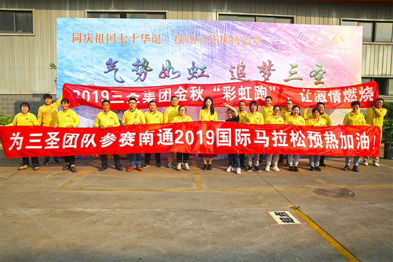 喜迎祖國七十華誕&預(yù)熱三圣團(tuán)隊(duì)亮相南通國際馬拉松賽……三圣集團(tuán)2019金秋“彩虹跑”絢麗呈現(xiàn)。