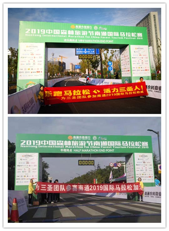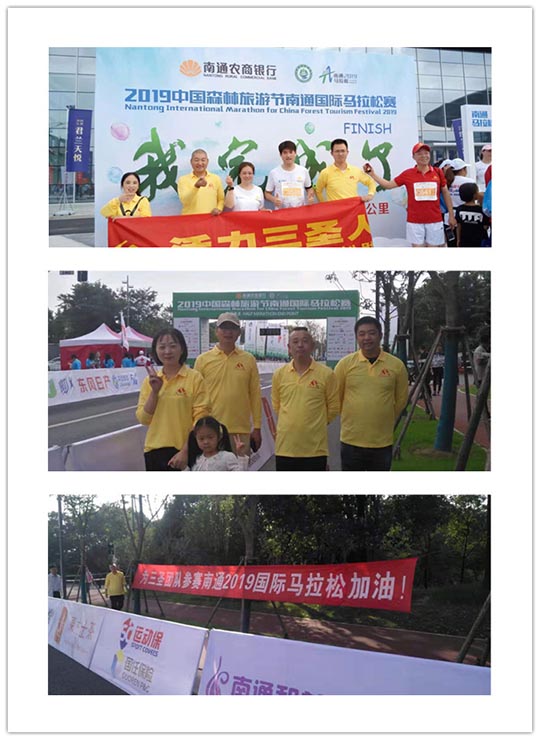 2019中國(guó)森林旅游節(jié)南通國(guó)際馬拉松在南通體育會(huì)展中心南大門(mén)正式開(kāi)跑!南通瞬間成為全世界最熱鬧的城市之一!此次國(guó)際馬拉松賽是南通首次舉辦國(guó)際馬拉松賽,也是南通有史以來(lái)舉辦的規(guī)模最大、人員最多的體育賽事。上萬(wàn)運(yùn)動(dòng)愛(ài)好者集結(jié)于此,一場(chǎng)展現(xiàn)毅力與勇氣的戰(zhàn)斗開(kāi)啟.南通三圣企業(yè)集團(tuán)組織參賽人員與來(lái)自全國(guó)各地和肯尼亞、德國(guó)、英國(guó)等20多個(gè)國(guó)家和地區(qū)近15000名選手同場(chǎng)競(jìng)技,用奔跑共同迎接即將到來(lái)的2020年.激情洋溢的三圣跑團(tuán)、以及熱情奔放的三圣拉拉隊(duì)成為賽場(chǎng)上一道亮麗的風(fēng)景線(xiàn)。