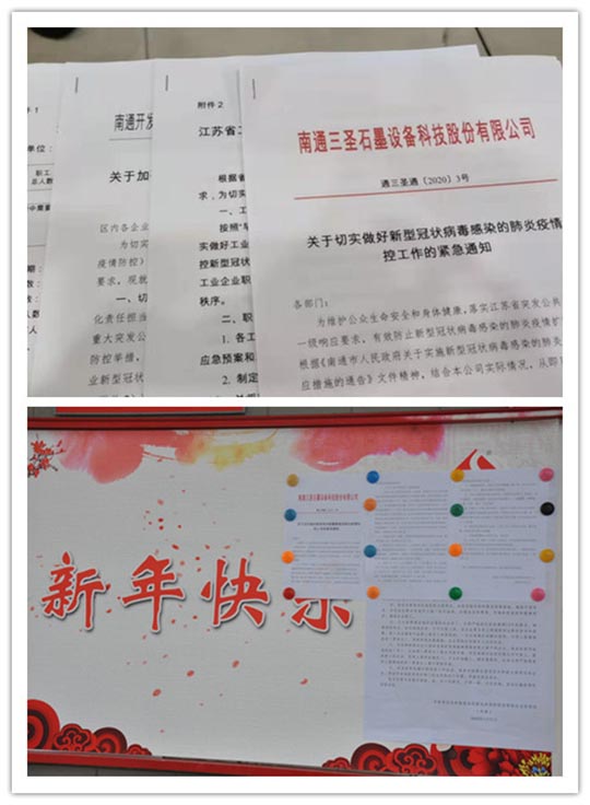 2020年伊始,在這場(chǎng)沒有硝煙的抗疫戰(zhàn)斗中,億萬(wàn)中國(guó)人民團(tuán)結(jié)一心、同舟共濟(jì),眾志成城抗疫情。自爆發(fā)疫情以來(lái),三圣企業(yè)集團(tuán)也立即成立防疫領(lǐng)導(dǎo)小組,緊急召開兩次會(huì)議,部署相關(guān)防疫工作,嚴(yán)格執(zhí)行《南通市人民政府關(guān)于實(shí)施新型冠狀病毒感染的肺炎疫情一級(jí)響應(yīng)措施的通告》文件精神。