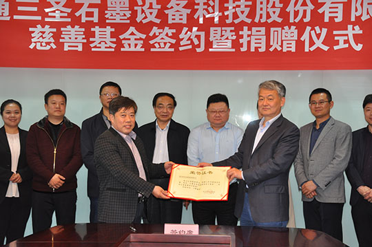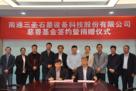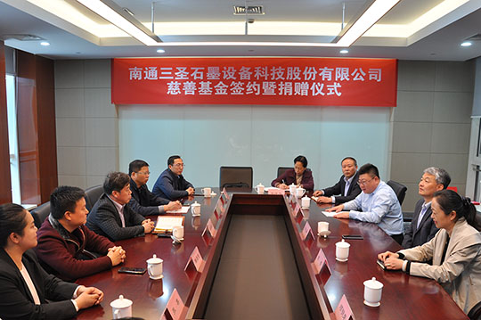 2020年4月21日,“南通三圣石墨設(shè)備科技股份有限公司慈善基金簽約暨捐贈(zèng)儀式”在南通開發(fā)區(qū)能達(dá)大廈401會(huì)議室召開,該項(xiàng)基金將主要用于開發(fā)區(qū)安老扶幼、助學(xué)助醫(yī)、扶貧賑災(zāi)、助殘濟(jì)困、公益環(huán)保等慈善公益事業(yè),推動(dòng)該區(qū)慈善事業(yè)的健康發(fā)展。