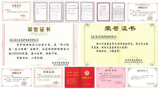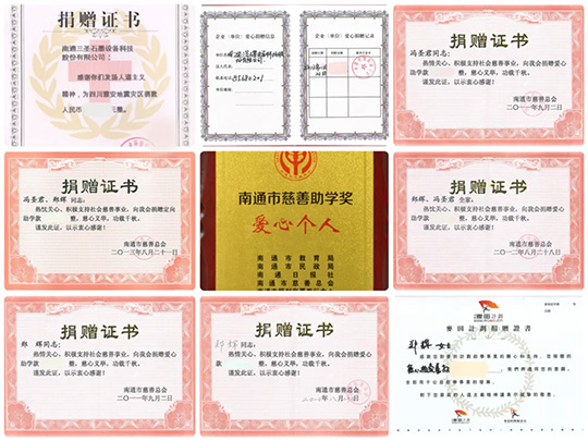 近二十年來,南通三圣企業(yè)集團通過設(shè)立專項基金、捐贈物資、組織志愿者服務(wù)、參加公益活動等多種形式,長期致力于教育助學(xué)、鄉(xiāng)村振興、應(yīng)急救援、環(huán)境保護、助老助困等領(lǐng)域發(fā)揮自己的光和熱,也曾受到政府各級的諸多表彰。