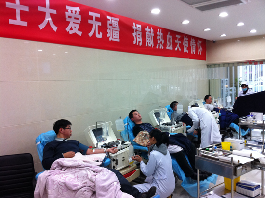 得知第一批獻血未成之后,員工中迅速自發(fā)組織第二批獻血員工,設計部戴尚權(quán)、狄陽,工程部陳健生,市場部周元明等五位員工在愛心基金會委員長魯沈彬的帶領(lǐng)之下,再次急赴獻血點。難能可貴的是,設計部狄陽、工程部的陳健生,進入公司時間不長,與趙亞東尚未謀面,但是,他們卻急人所急,積極響應倡議,毫不猶豫地參加了獻血。通過檢驗,最終魯沈彬、戴尚權(quán)、狄陽、周元明等四位同事符合捐獻成分血的要求,積極完成了獻血活動,為趙亞東提供了寶貴的四份用血指標。